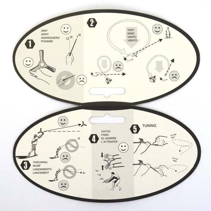Der Outdoor-Bumerang kommt ohne viel Verpackung, dafür aber mit einer kurzen und genauen Wurfanleitung daher. Der Wurf ist einfach zu erlernen und verzeiht viele klassische Anfängerfehler. Das Material ist robust und hält auch schon mal einen Zusammenprall mit einem Baum oder sogar der Hauswand aus. Ausnahme sind niedrige Temperaturen, da das Polyproylen unter 5°C spröde wird. Der Bumerang ist nur für Rechtshänder! Flugweite 15-20 Meter. Ein sehr gelungener Einsteigerbumerang bei dem der Fang mit dem Finger in der Kreismitte schnell zum Highlight wird.